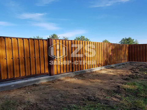 - Забор на ленточном фундаменте из евроштакетника 30 метров