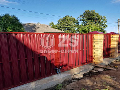 - Забор на ленточном фундаменте из евроштакетника 40 метров