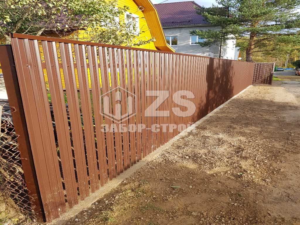 - Забор на ленточном фундаменте из евроштакетника 50 метров
