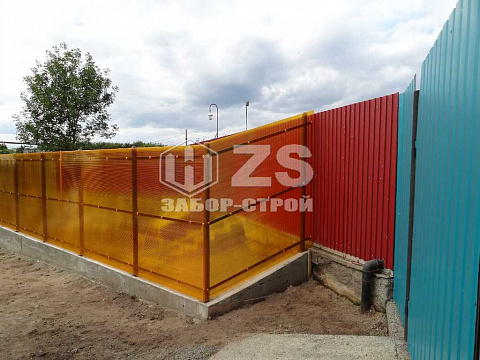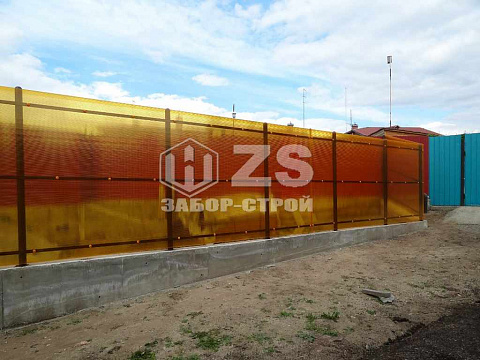 - Забор на ленточном фундаменте из поликарбоната 30 метров