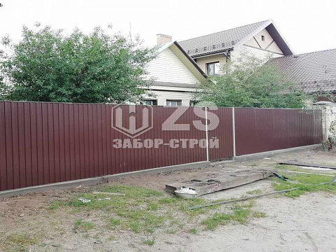 - Забор на ленточном фундаменте из профнастила 45 метров