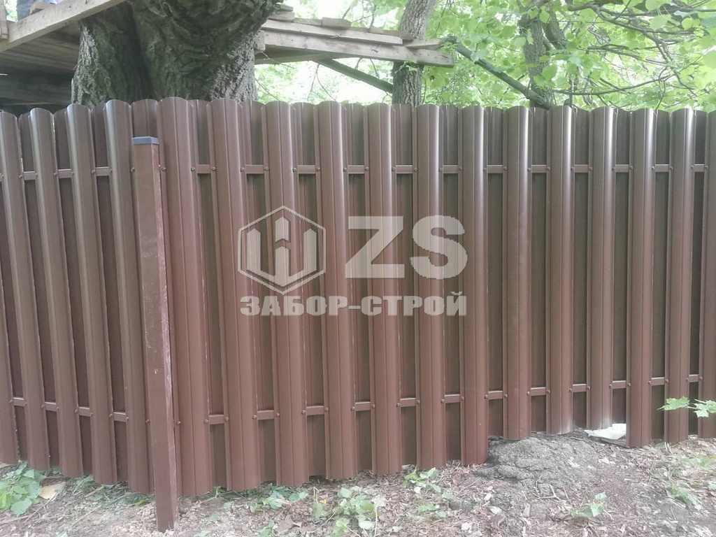 - Забор на столбах с утрамбовкой щебня из евроштакетника 45 метров