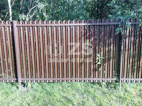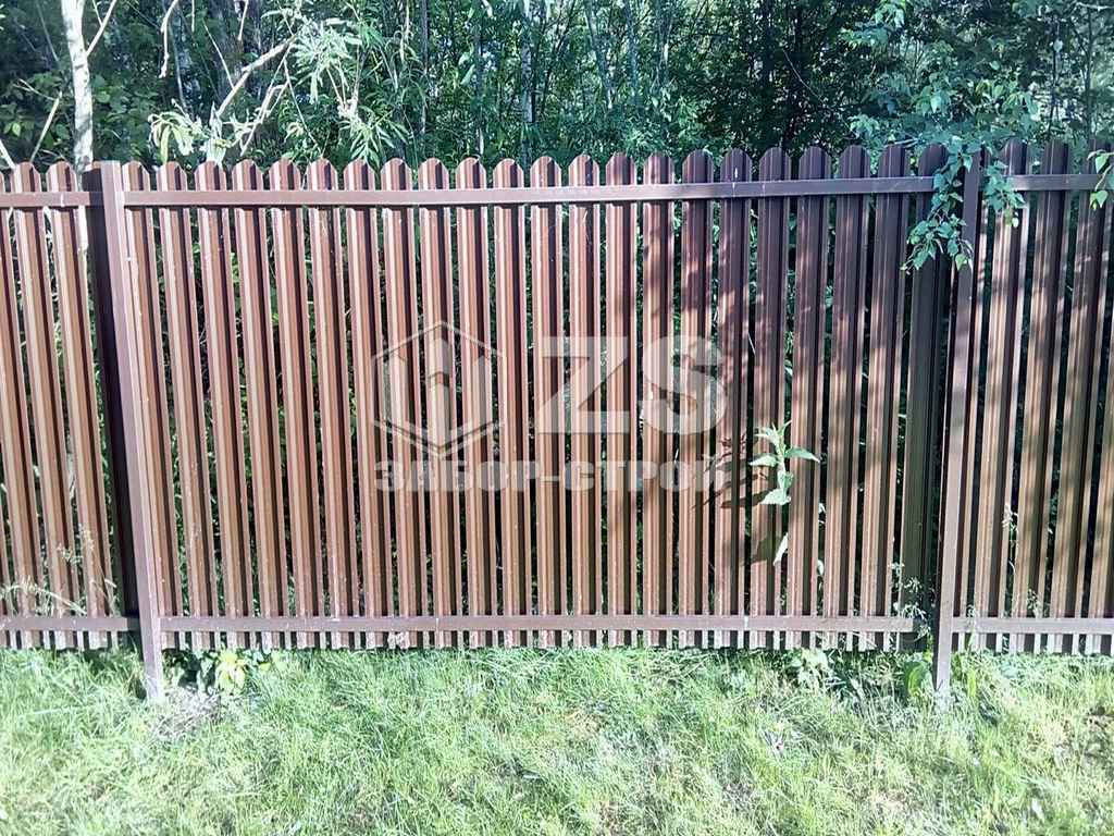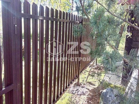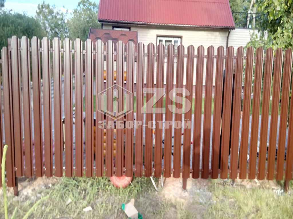 - Забор на столбах с утрамбовкой щебня из евроштакетникаа 25 метров