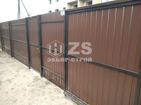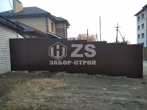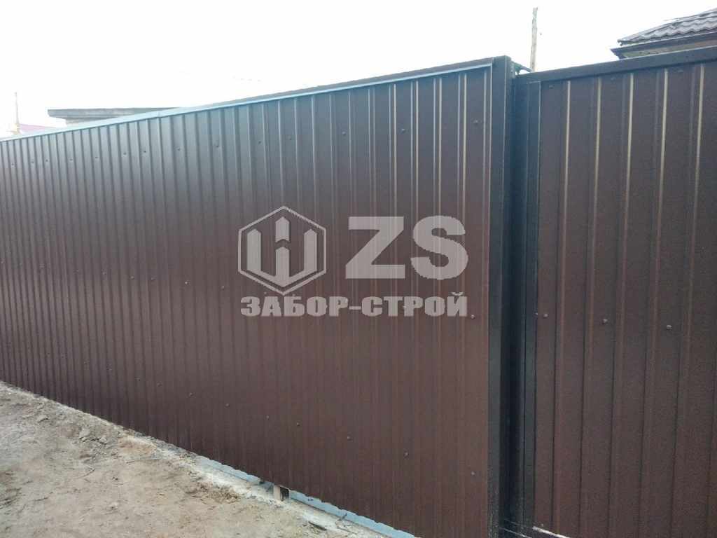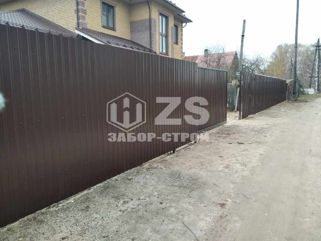 - Забор на столбах с утрамбовкой щебня из профнастила 11 соток