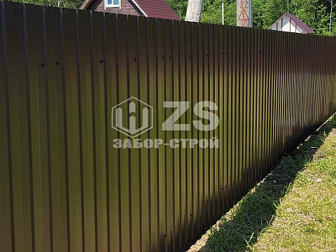 - Забор на столбах с утрамбовкой щебня из профнастила 20 метров