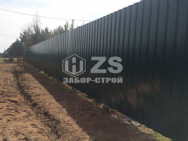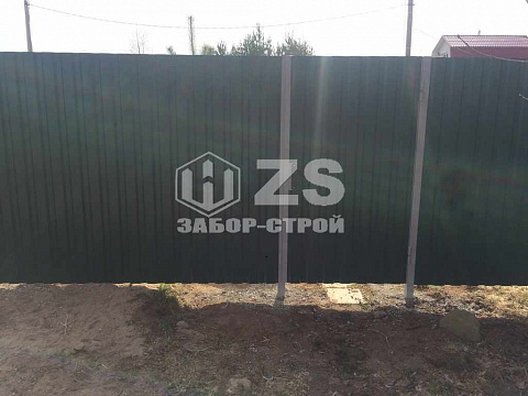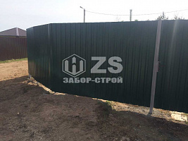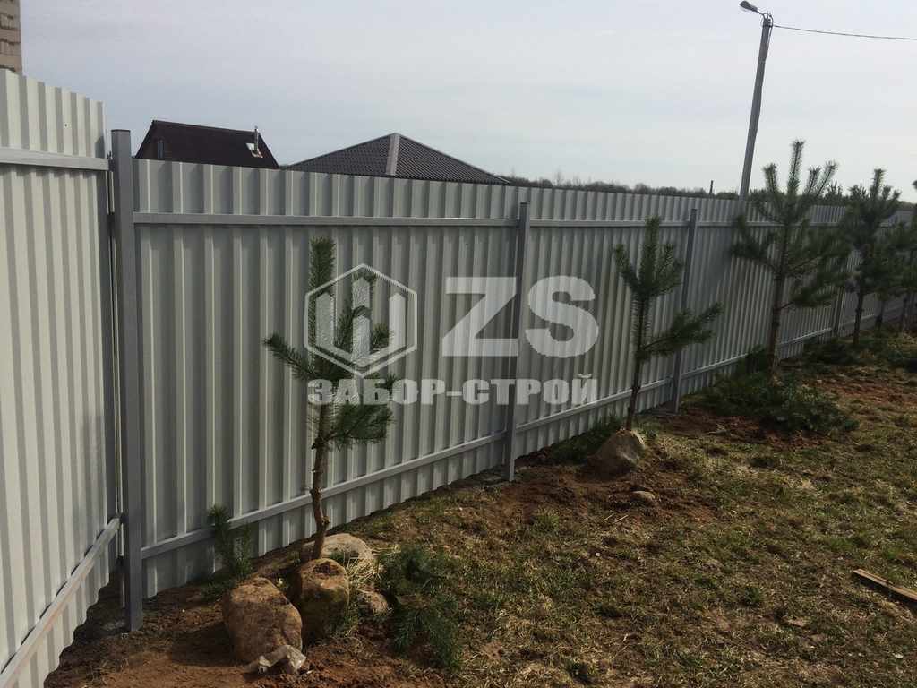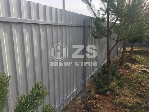 - Забор на столбах с утрамбовкой щебня из профнастила 35 метров