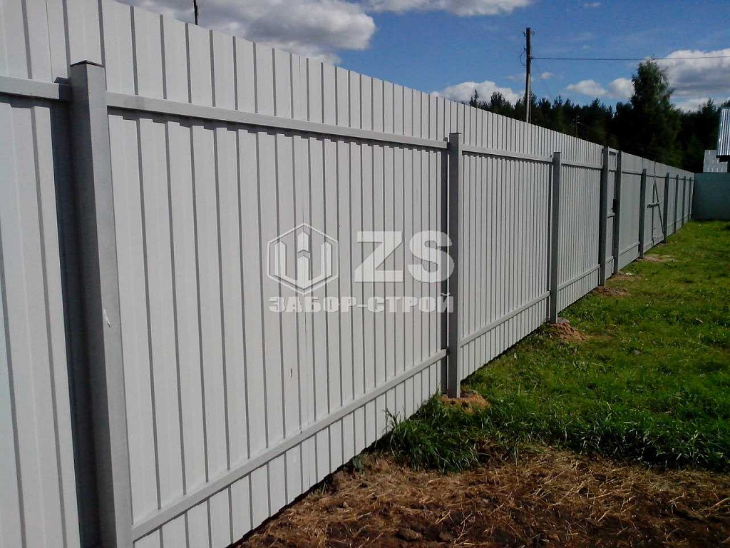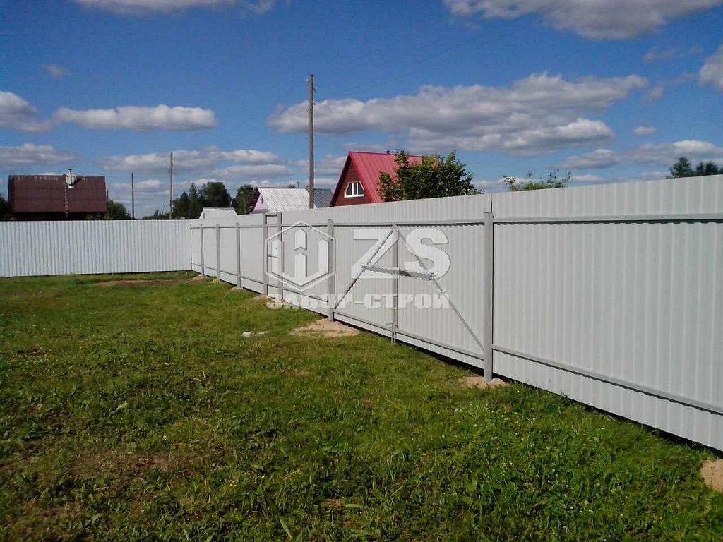 - Забор на столбах с утрамбовкой щебня из профнастила 40 метров