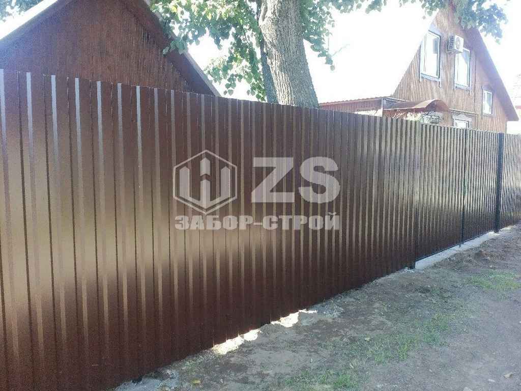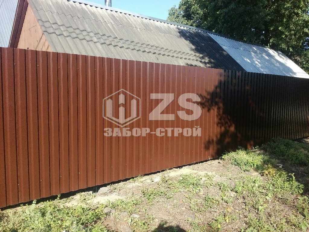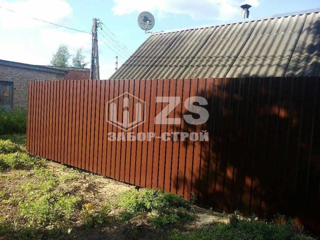 - Забор на столбах с утрамбовкой щебня из профнастила 55 метров