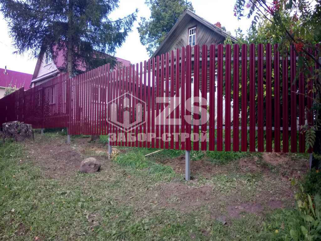 - Забор на забивных столбах из евроштакетника 8 соток