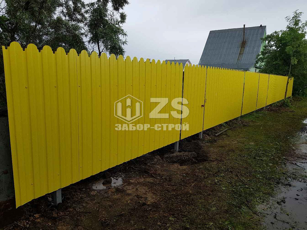 - Забор на забивных столбах из профнастила 30 метров
