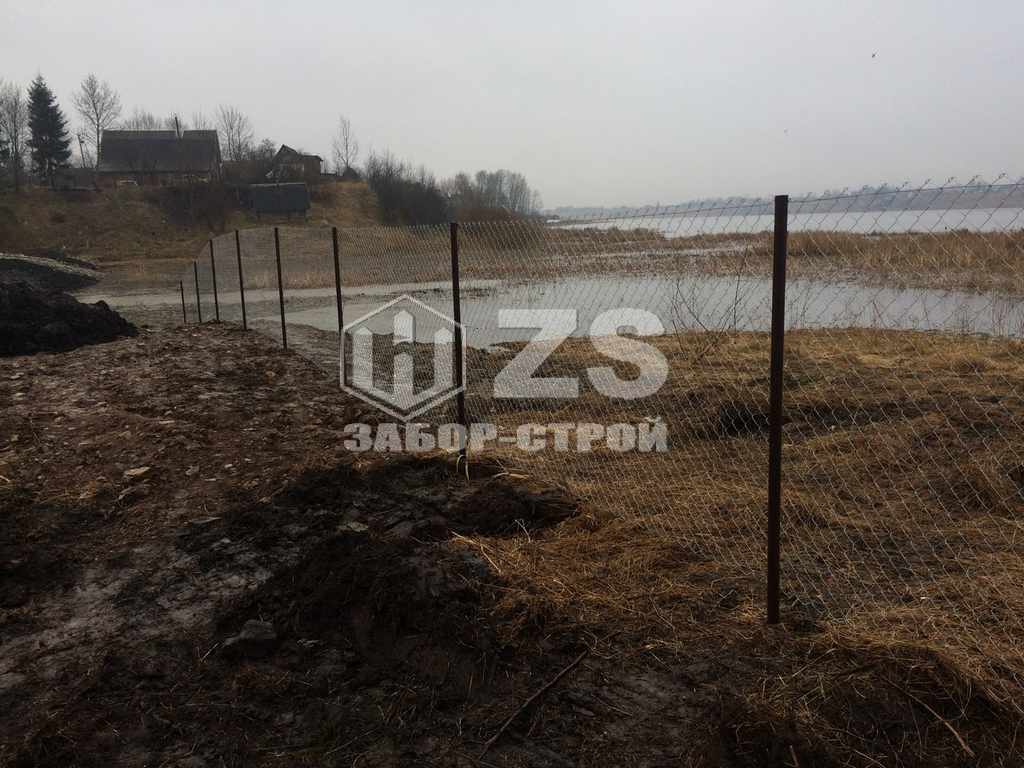 - Забор на забивных столбах из сетки рабицы 6 соток