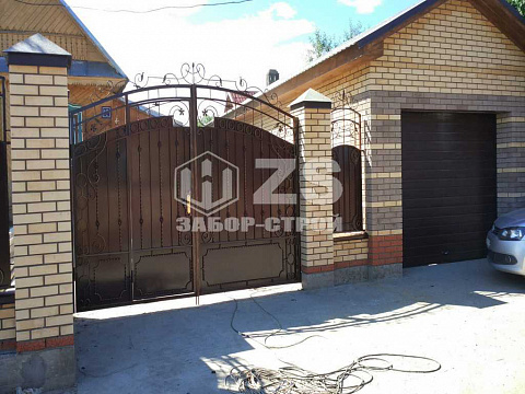- Забор с воротами из кованой секции 6 соток